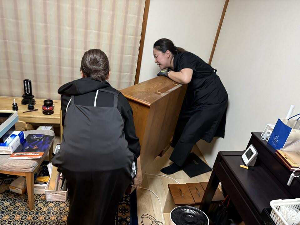 鏡台と引き出しは私たちアドバイザーが運びました。